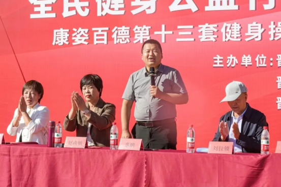 和顺地区老年体育中心协会主席 王玉明,康姿百德销售公司副总监 惠鹏,山西晋中和太原地区总经理 赵淑敏,晋中和顺地区经理 郭萍、晋中昔阳地区经理 张佳佳、晋中左权地区经理 郭伟、健身爱好者代表 刘拉锁共同出席了本次活动。